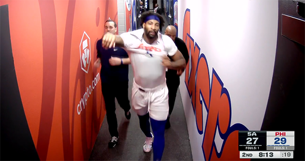 来源:360直播吧12-24 10:11360直播吧讯北京时间12月24日,NBA常规赛马刺客场大战76人,第二节场上出现争议判罚,庄神连吃两T被驱逐,纳斯怒喷裁判,之后裁判取消庄神的技犯,庄神又从更衣室中回到场上继续比赛;上半场最后阶段,恩比德怒喷裁判连吃两T被驱逐离场。
