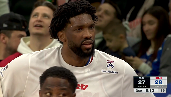 上半场最后3分钟,恩比德突破撞倒文班亚马吃到技术犯规,随后恩比德十分生气,暴怒并且怒喷裁判从而吃到技术犯规,之后恩比德更加生气,再次吃T,连吃两T被驱逐离场。
