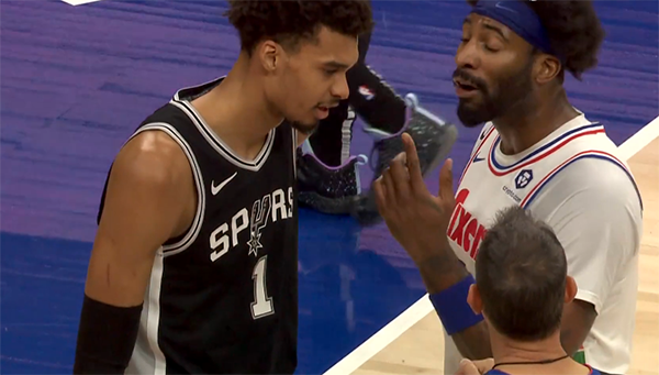 第二节8分多钟,在禁区卡位时,“庄神”德拉蒙德推倒文班亚马,裁判吹罚庄神技术犯规,期间两人争论,庄神喷文班太软了;仅仅过了4秒,庄神和文班又发生身体接触,文班再次摔倒,裁判再次吹罚庄神技术犯规,庄神连吃两T被驱逐离场,裁判如此判罚引发不满,纳斯·抱怨十分生气。