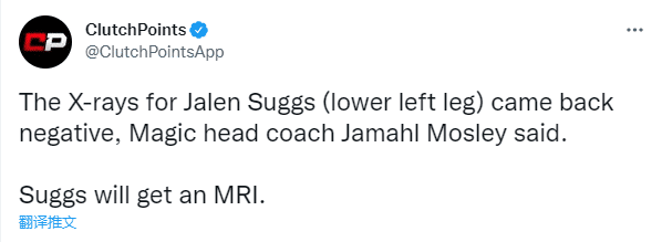 季前赛至今,联盟已经有多名球员受伤,比如今天魔术新星萨格斯左小腿受伤被迫退赛,所幸X光检查结果呈阴性,将接受核磁检查从而进一步确诊伤情;此前湖人新援安德森伤退,浓眉也遭遇背伤的困扰,太阳两大主力佩恩和约翰逊遭遇手指伤病,将缺席季前赛剩余全部比赛。