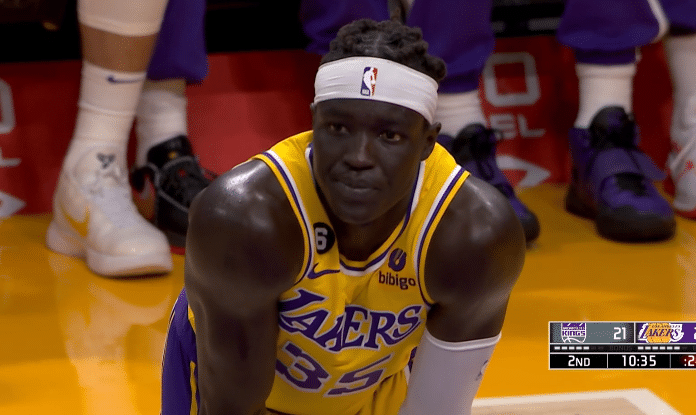 上半场最后3分多钟,湖人三巨头都不在场上,替补阵容在防守端打得很卖力,安德森抢断,但缺乏进攻强点,半场打完,湖人46-41仍旧保持领先。