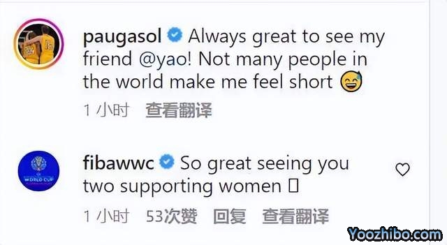 来源:360直播吧10-03 16:06360直播吧10月03日讯 ,前NBA球星大加索尔更新社媒,晒出了一张自己和姚明在女篮世界杯上的合影。合影中,2米13的大加站在2米26的姚明身边。大加配文写道:“见到我的朋友姚明总是很高兴!世界上没有几个人能让我感觉自己矮小。” FIBA女篮世界杯官媒留言道:“很高兴看到你们对女性的支持。”