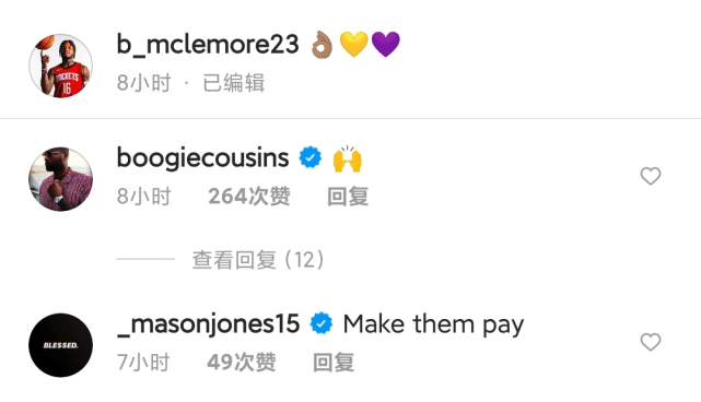 琼斯提及的“他们”显然指代的是麦克勒莫的老东家火箭。琼斯、考辛斯和麦克勒莫一样,都在本赛季被火箭裁掉过,如今出现在同一个页面上,倒是有点同仇敌忾的既视感。火箭没把麦克勒莫当作球队未来的一部分,当再次面对老东家时,麦克勒莫有机会证明自己。
