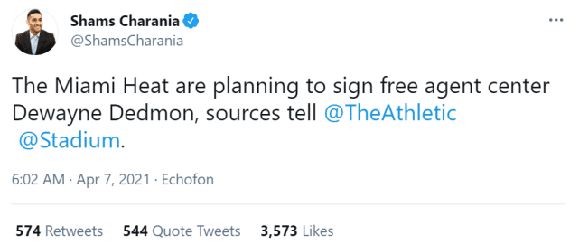 此前,热火在买断市场引援上接连受挫,他们有兴趣签下格里芬、阿尔德里奇和德拉蒙德,结果前两位加盟篮网,庄神则去了湖人。热火将签下的戴德蒙,也是一个实力不错的内线。不过他已经一年多没打球了,戴德蒙上一次出现在NBA赛场,还是2020年3月11日,当时他效力于老鹰。2020年11月20日,他被老鹰交易到活塞,换来斯内尔和托马斯,而活塞在4天后选择裁掉戴德蒙。