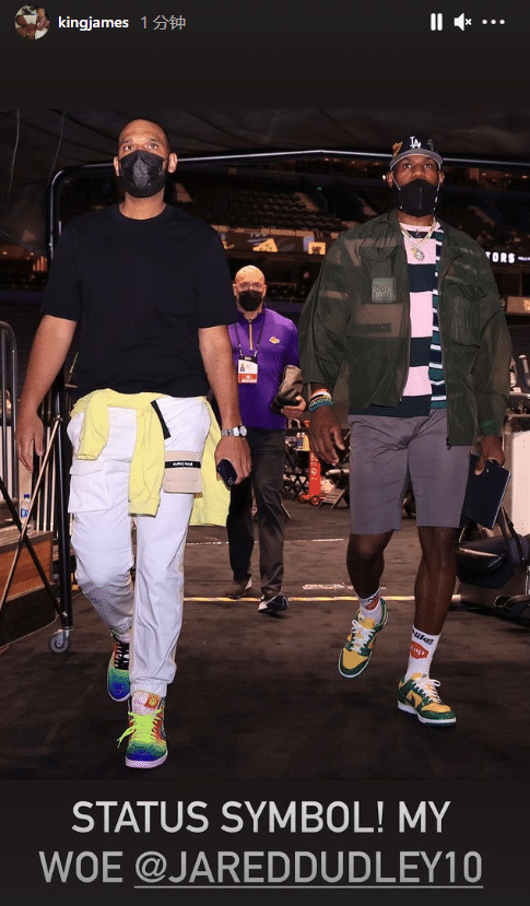 此前詹姆斯遭遇脚踝扭伤,最近一段时间他一直在家养伤,期间他穿着保护靴苦练;如今36岁詹姆斯伤愈进展神速,已经脱掉保护靴正常走路;詹姆斯在社媒媒体上晒出合影,写道:状态的象征!我的搭档杜德利。