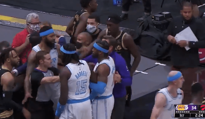 湖人猛龙冲突细节!特伦特未被罚下,哈雷尔送球衣+摆胜利手势