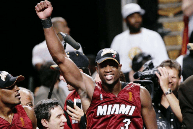 06年还是三年级的韦德就在总决赛,以场均34.7分7.8篮板3.8助攻2.7抢断的数据率队夺得了总冠军,并力压奥尼尔获得了总决赛MVP。也是在那一年,联盟所有人都知道了有一种打法,叫做“韦德率领”。韦德也因此一跃成为联盟的超级巨星。矮了5cm的乔丹从此便在NBA有了自己一席之地。韦德06年总决赛的表现,也成媒体称为总决赛最为震撼的个人表演。种下梧桐树,引来金凤凰。这也促使了10年热火三巨头的组成!