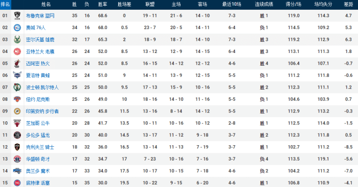 来源:360直播吧04-06 11:24360直播吧讯今天NBA常规赛东部球队的表现都很出色,其中骑士24分大胜马刺、活塞24分大胜雷霆,东部球队之间的对决中,篮网在纽约德比中2分优势险胜尼克斯,重返榜首。猛龙依靠着特伦特的绝杀击败奇才。这样东部的格局发生了很大的变化: