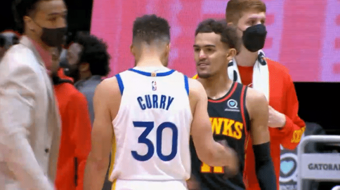 输球后,库里拥抱特雷杨忍不住大笑,离场时送签名球衣,勇士:满满的爱