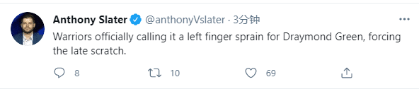 比赛开打之前,勇士首发五虎分别是普尔、乌布雷、怀斯曼、维金斯和托斯卡诺-安德森,随后勇士临时将格林从首发阵容中撤下了,安德森顶替其首发出战;随后勇士官方宣布格林因左手手指扭伤缺席比赛,因伤临时退赛;库里因旧伤不适缺阵,格林又伤停,换球馆之后的勇士太不幸了。