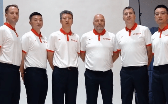 乔尔杰维奇与郭士强等人合影,郭士强是中国男篮的助理教练,这是乔帅第一次带领中国队出战比赛,外界期待值很高。