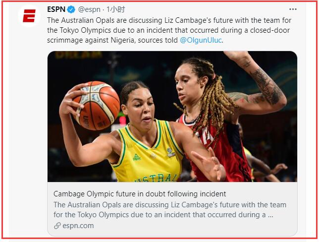 来源:360直播吧07-16 18:41360直播吧讯 京时间7月16日,据ESPN记者Olgun Uluc报道,澳大利亚教练组正在讨论是否将主力中锋坎佩奇驱逐出队,原因是她在近日一场对阵尼日利亚的封闭热身赛中发生了争执,同时,她在前段时间的队内封闭训练中,还违反球队纪律私自外出,这样的举动让球队上下非常不满,而澳大利亚教练组和篮协正在紧急商讨对于坎佩奇的处罚,最严重的结果,将会把她直接驱逐出队,不让她随队出征本届东京奥运会。