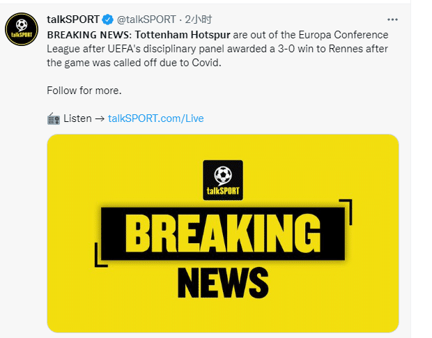 360直播吧12月20日讯 这场欧会杯G组的最后一轮比赛原定于12月10日进行,但热刺队内多人感染新冠,于是热刺宣布延期,但欧足联刚开始并没有官方宣布延期,热刺的决定被认为是单方面的。