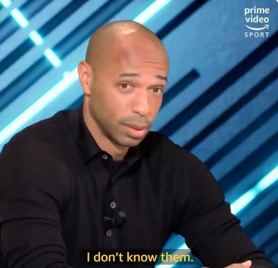 亨利回答:“抱歉,对谁?”主持人:“热刺!”亨利:“我不认识他们!”中间的主持人打断(指着亨利):“你想让他生气吗?”