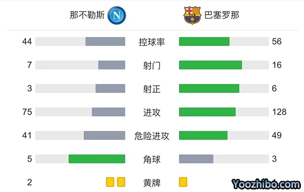 全场比赛结束,巴萨4-2那不勒斯,总比分5-3晋级16强。