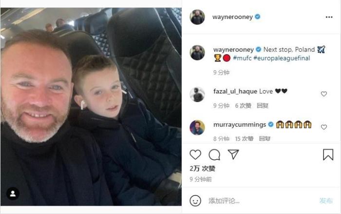 此前,曼联传奇主帅弗格森已随队出征,今日,曼联传奇球员鲁尼晒出与孩子合照,并写道:“下一站,波兰✈