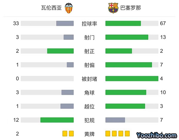 全场比赛结束,巴萨客场1-0瓦伦西亚。