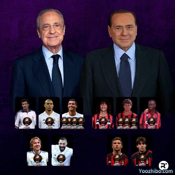 凭借本泽马的金球奖,弗洛伦蒂诺正式超越前米兰传奇主席贝卢斯科尼,成为足坛历史上获得金球奖最多的俱乐部主席。