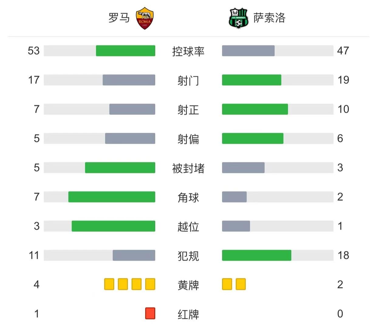 罗马3-4萨索洛 迪巴拉破门库姆布拉染红+送点引争议