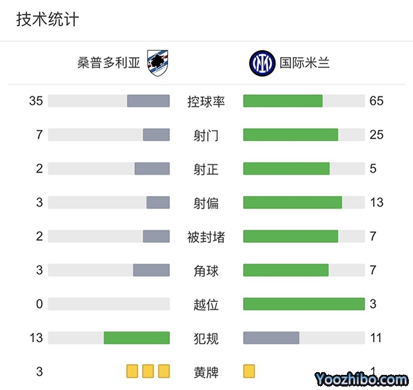 全场比赛结束,国际米兰0-0桑普多利亚距离榜首15分。