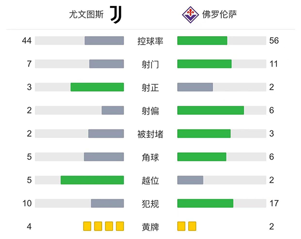 全场比赛结束,最终尤文1-0佛罗伦萨。