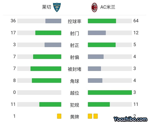 全场比赛结束,最终AC米兰2-2莱切联赛两连平。