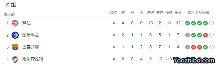 尤文图斯则在输给海法马卡比后4轮3分,落后第二名的本菲卡5分,掉下欧联杯的可能性很大。