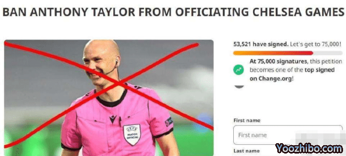 这场比赛的裁判是泰勒,因为他这场比赛执法引起很大的争议,所以赛后有不少球迷在投票网站发起投票希望禁止泰勒吹罚切尔西的比赛。截至目前,有5.3万名名球迷进行了签名投票予以支持。因为票数超过了3万票,所以这一投票选项被置顶,会被更多人看到。