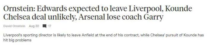 360直播吧8月31日讯 据TheAthletic报道,利物浦体育总监爱德华兹将在本赛季结束后离开。