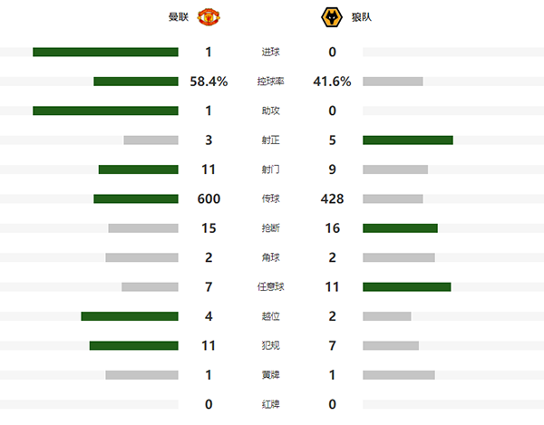 第93分钟,B费长传转移,拉什福德禁区右侧连续扣球调整,突然起脚射门折线后飞入网窝,曼联1-0狼队!